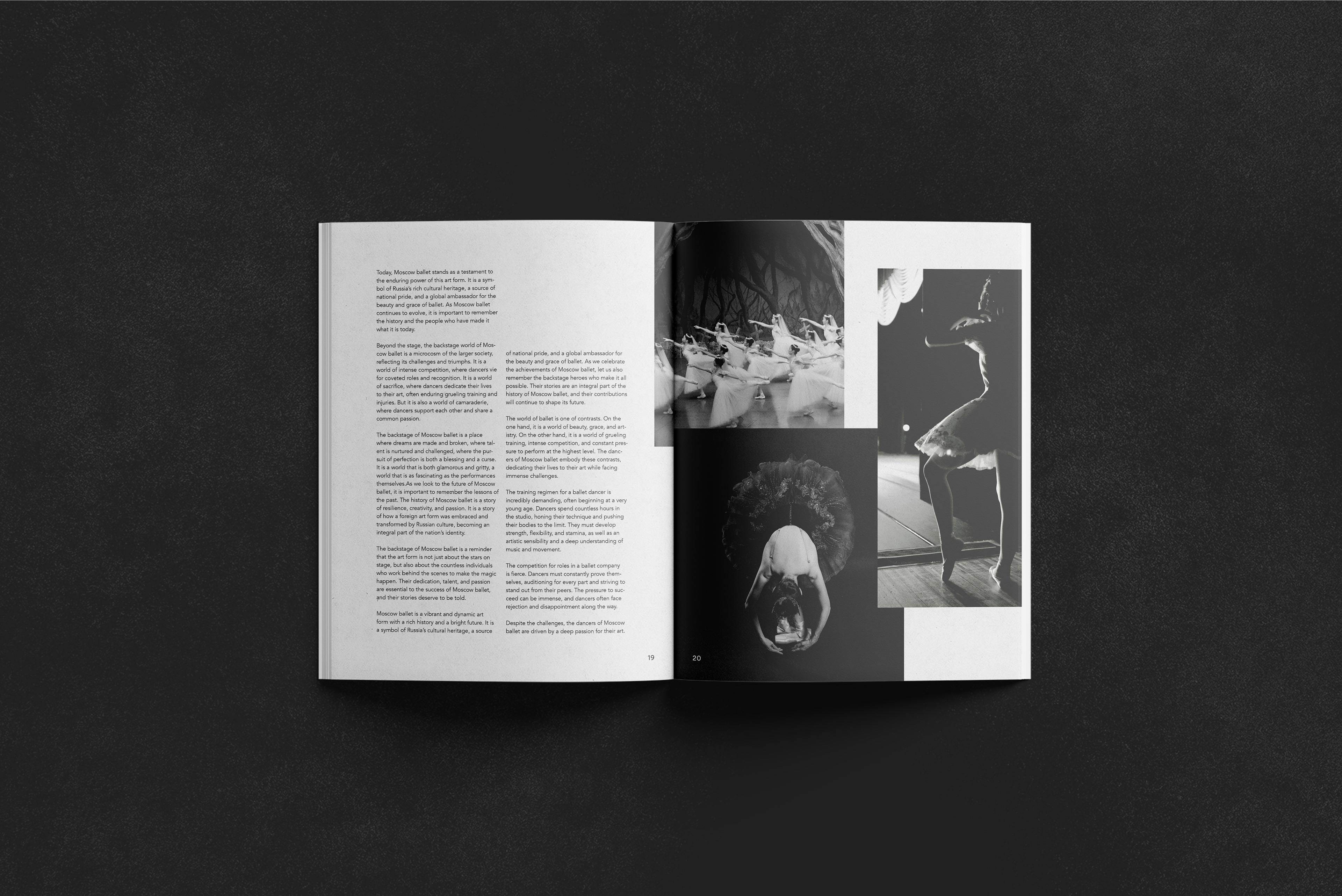 An editorial publication exploring ballet beyond the stage. By uncovering its history, traditions, and backstage presence, this publication reframes ballet in a new light. This new light can help bring a new audience to this beautiful art. Thus allowing curiosity to spark while inviting readers to see it as both cultural language and living art form.